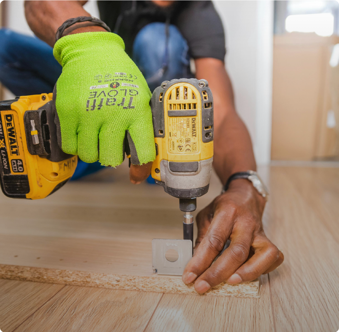 Pose de revêtements de sol (bois, stratifié, carrelage, etc.) avec préparation adéquate.